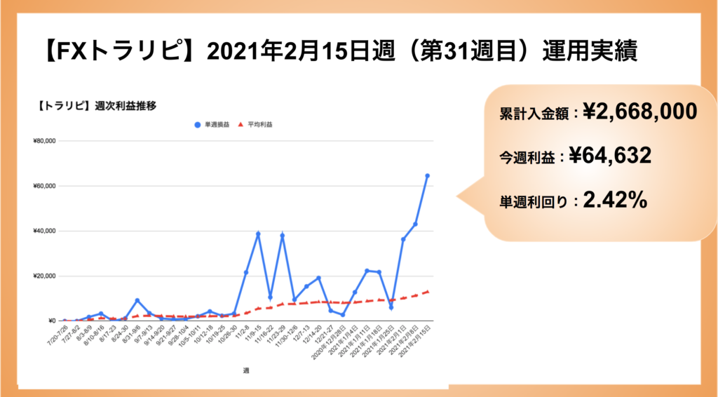 【FXトラリピ】2021年2月15日週(第31週目)週間運用実績報告